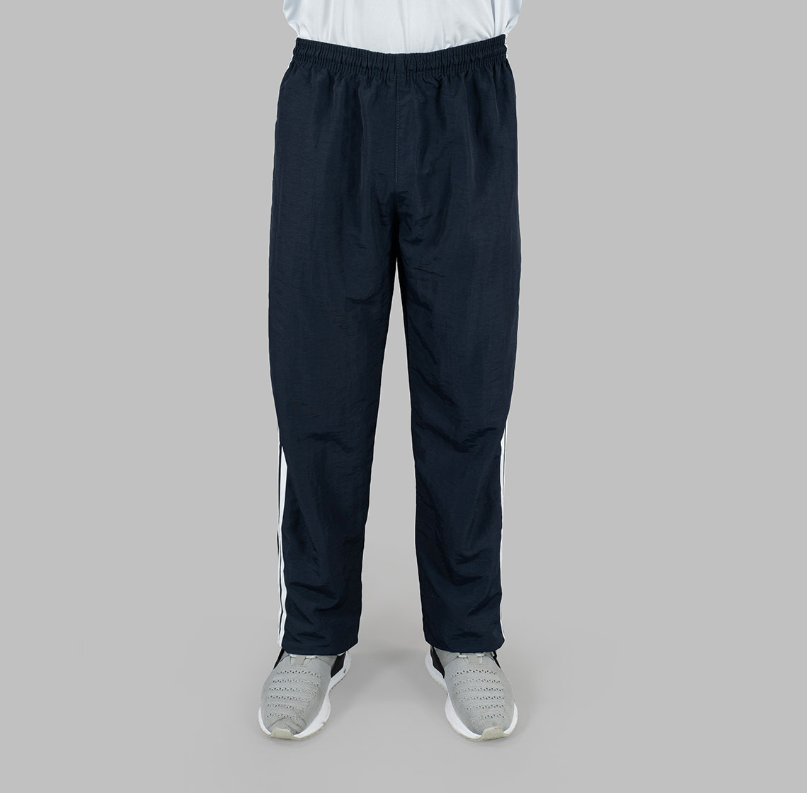 PANTALON NYLON AZUL MARINO 2 RAYAS BLANCA CON ZIPPER NIÑOS